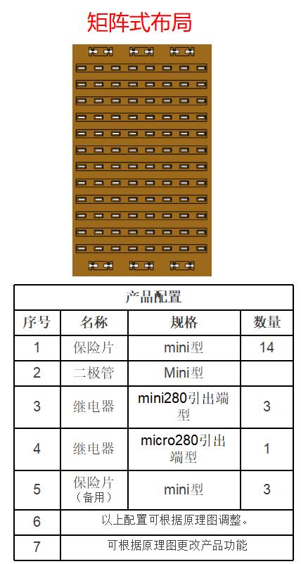 H. 矩陣式布局,可根據(jù)需求組合保險片和繼電器
