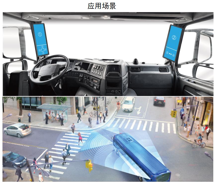 應用領域: 卡車、客車、工程車輛等具有視覺盲區(qū)的車型。